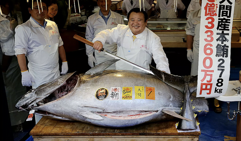 O trailer de um documentário- The end of the line– mexeu com as estruturas da indústria da pesca mundial ao denunciar o extermínio do atum azul. A prestigiosa revista inglesa The Economist, assim se referiu ao trabalho: “The Inconvenient Truth about the oceans”, fazendo um trocadilho com o nome do documentário de All Gore, ex- vice presidente dos USA. Apesar de todos os alertas, o peixe continua a despertar o apetite mundial. Em 2019, no primeiro leilão do ano novo no mercado de Tóquio, um atum azul com 278 Kg, foi comprado pela bagatela de US$ 3,1 milhões de dólares pelo dono de uma cadeia de restaurantes. O exemplar foi pescado na costa da província de Aomori, ao norte do Japão. Com mais este lance, foi batido o recorde de preço anterior (US$ 1,16), datado de 2013.