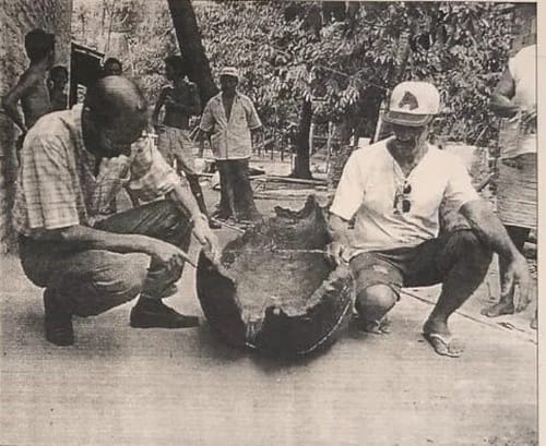 ‘A notícia da canoa, bem conhecida como canoa-de-um-pau-só ou canoa de índio, correu solta até encontrar Oscar Nascimento, assistente do Museu Câmara Cascudo da UFRN. Ele avisou sua equipe de trabalho, coordenada por Vicente Tassone. A imagem abaixo registra o momento do encontro em dezembro de 1997, acompanhado de perto pela comunidade, quando o arqueólogo ressaltou para imprensa a importância do achado que, correlacionado com cerâmicas tupinambás datadas, poderia ter com cerca 700 anos’.