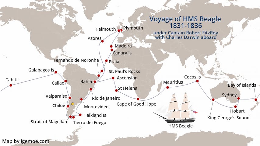 Mapa da viagem do HMS Beagle