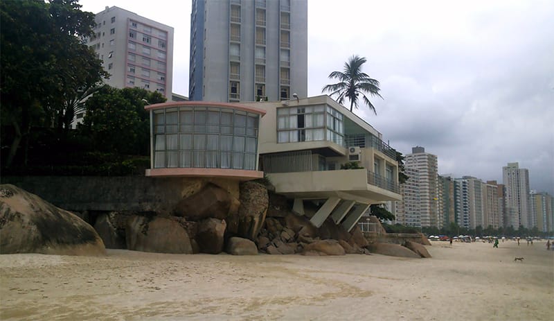 Um dos prédios mais icônicos do litoral paulista é o Edifício Sobre as Ondas cujo alvará de construção é de 1945. Trata-se de um projeto modernista localizado no promontório que separa as praias de Pitangueiras e Astúrias. Interessante saber que em 1940 o Guarujá tinha apenas 7 mil habitantes, mesmo assim os prédios já começavam a subir. O Sobre as Ondas ficou pronto em 1951.