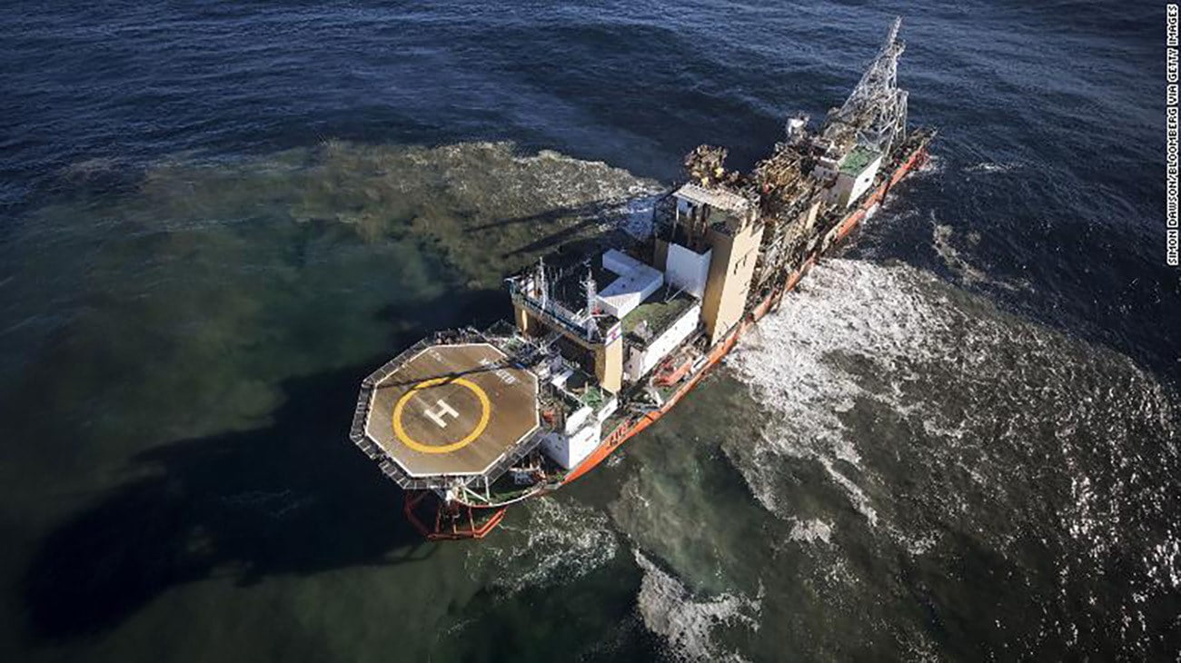 Vistos do alto, os navios de mineração lembram plataformas de petróleo: têm mais de 100 metros de comprimento, helipontos, dragas e estacas metálicas industriais.