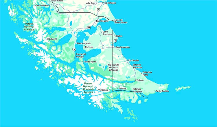A baía de San Sebastián pouco abaixo da entrada do Estreito de Magalhães.