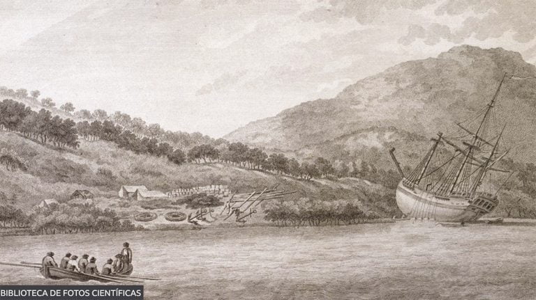 O HMS Endeavour foi o navio em que o capitão Cook fez um mapa da Nova Zelândia e da Austrália entre 1769 e 1771. O explorador britânico chegou ao largo da costa sudeste do que hoje é a Austrália em 1770, alcançando Botany Bay.