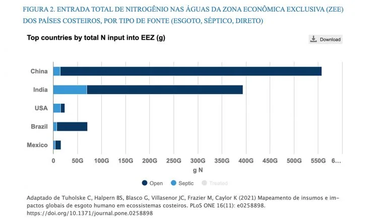 Fonte: https://oursharedseas.com/wastewaterimpacts/; https://journals.plos.org/plosone/article?id=10.1371/journal.pone.0258898.