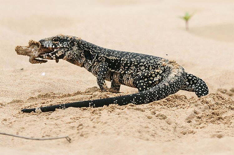 Todos sabem os prejuízos causados pelos teiús, entre outros, comer ovos de tartarugas-marinhas que desovam na ilha, ou da avifauna. Imagem, Eliseu Souza Júnior.