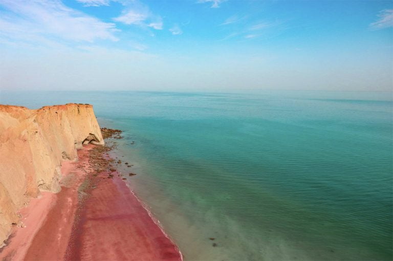 A geologia da ilha criou riachos ocres, praias em tons de carmesim e cavernas de sal de rara beleza. Essa explosão de cores fez Ormuz ganhar o apelido de “ilha do arco-íris”.