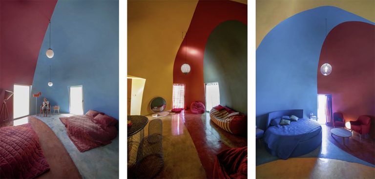 A gama de cores usadas resulta em uma topografia de arco-íris que se mistura com a paisagem surrealista da ilha.