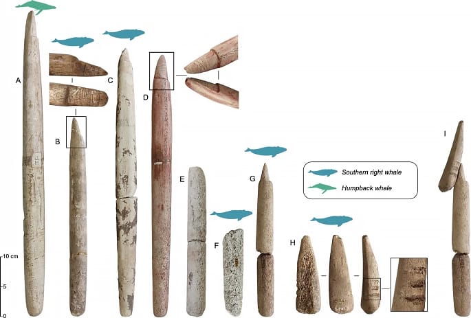 A equipe identificou 15 elementos de arpão, incluindo pontas e componentes do cabo, feitos de ossos de costela de baleia-franca-austral ou baleia-jubarte. A descoberta também mostrou que essas populações indígenas no Brasil não se limitavam a coletar moluscos e pescar. “A ideia convencional era de que os sambaquis não possuíam a tecnologia” para a caça às baleias, disse Colonese. “Isso nos mostra que eles realmente caçavam.”