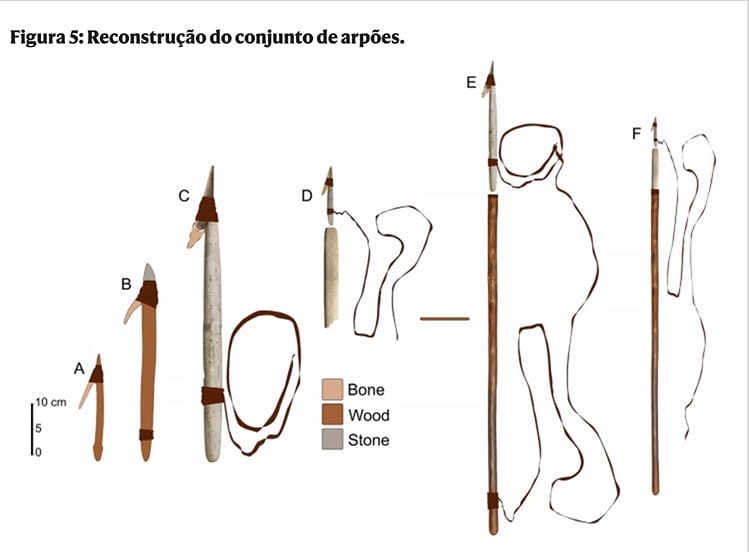 ‘Significativamente, a comparação com a literatura arqueológica e etnográfica mostra que alguns artefatos enigmáticos recuperados dos sambaquis na segunda metade do século passado são, na verdade, hastes de arpão feitas de osso de baleia, entre as maiores documentadas em sítios arqueológicos da América do Sul’.