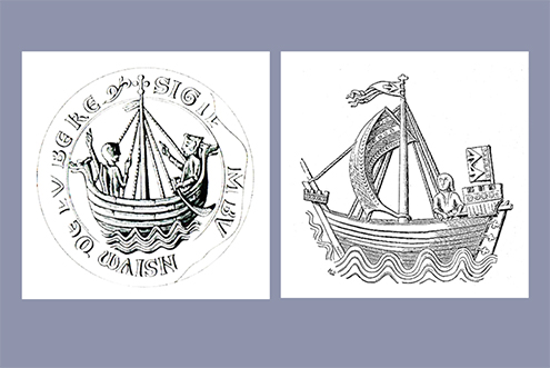 Ilustração de navios medievais. Domínio público.