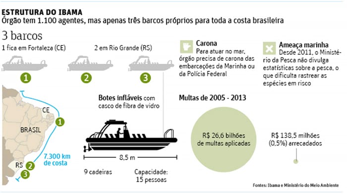 Cabe ao IBAMA fiscalizar o litoral em certos casos. Segundo o site da autarquia, ‘O Ibama coloca-se hoje como uma instituição de excelência para o cumprimento de seus objetivos institucionais relativos ao licenciamento ambiental, ao controle da qualidade ambiental, à autorização de uso dos recursos naturais e à fiscalização, monitoramento e controle ambiental’.