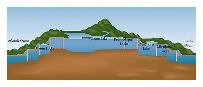 O Oceano Atlântico é 24 centímetros mais baixo que o Pacífico e o canal é 26 metros mais alto que os dois oceanos. abs
