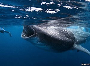 Tubarão-baleia coopera com mergulhador. Sensacional!