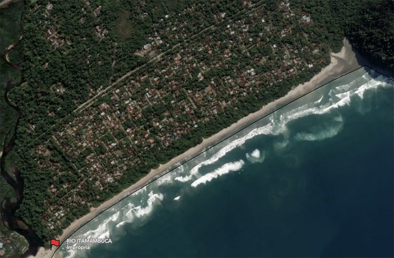 O trecho da Praia de Itamambuca, próximo ao rio, apareceu em segundo lugar no ranking da poluição. Em 2024, esteve impróprio para uso em 27 das 52 semanas.