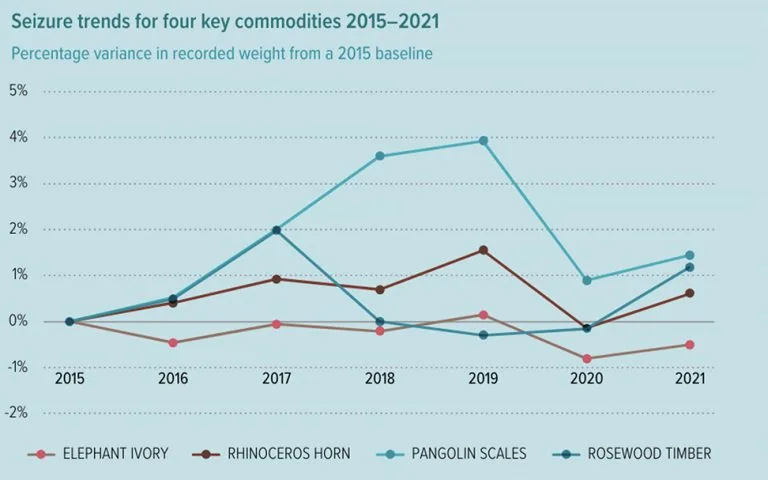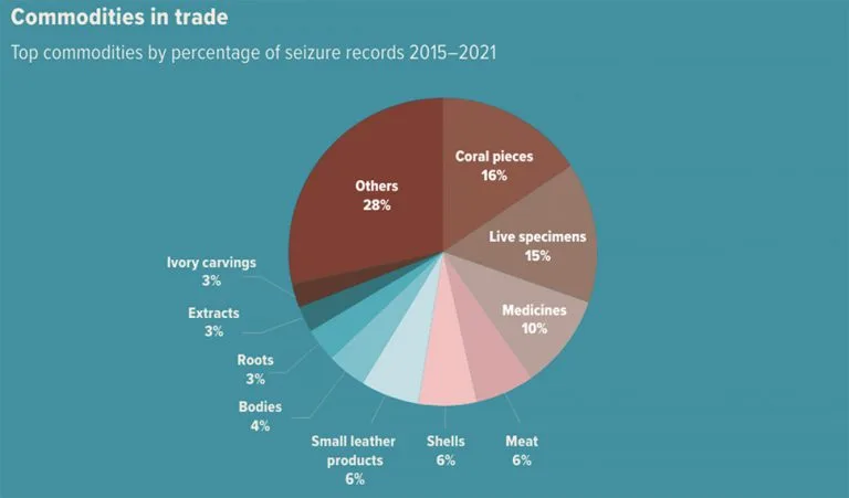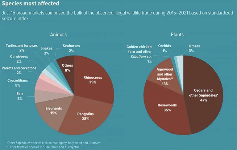 Os dados de apreensão documentam o comércio ilegal em 162 países e territórios durante 2015-2021, que afetou cerca de 4.000 espécies de plantas e animais. Destas, 3.250 estão listadas nos Apêndices da CITES. Cerca de 13 milhões de plantas/animais foram apreendidos de 2015 a 2021.