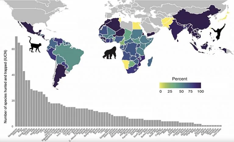 Macacos, capazes de espalhar vírus, parasitas e bactérias ao longo das rotas de tráfico, também são severamente afetados por deficiências sistêmicas. No Togo, a apreensão de 38 macacos, incluindo espécies traficadas da República Democrática do Congo (RDC) para a Tailândia, revelou inspeções fronteiriças inadequadas no Congo.