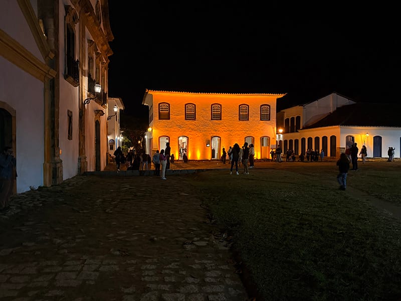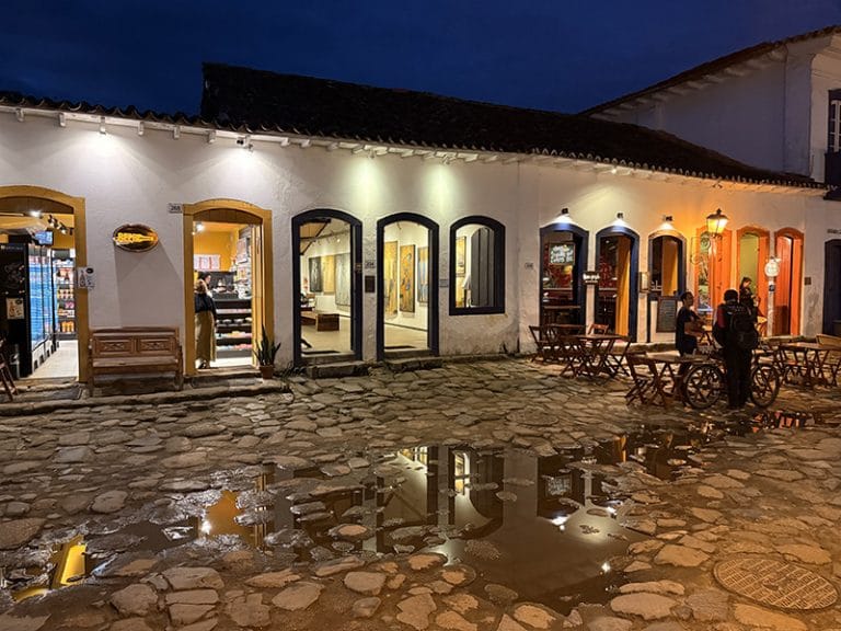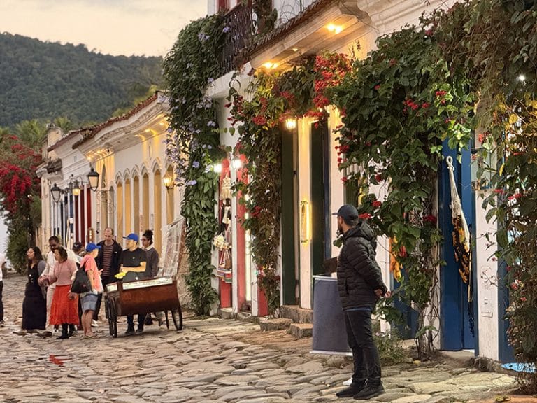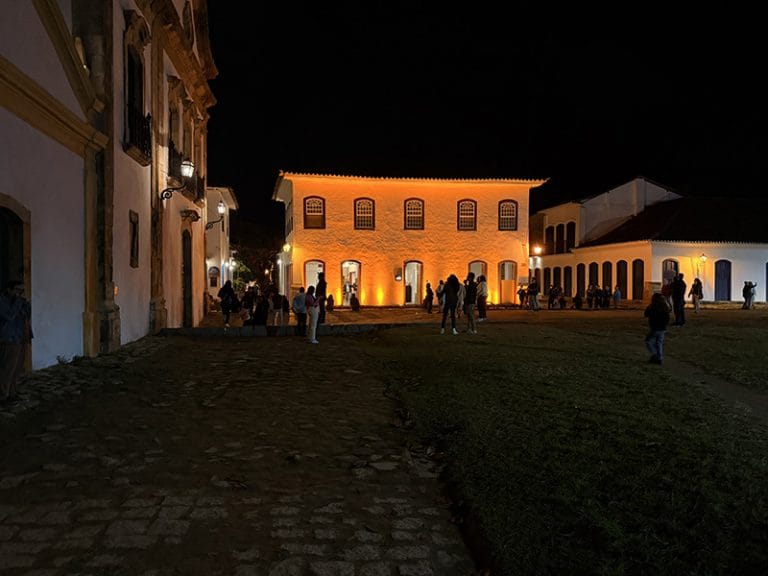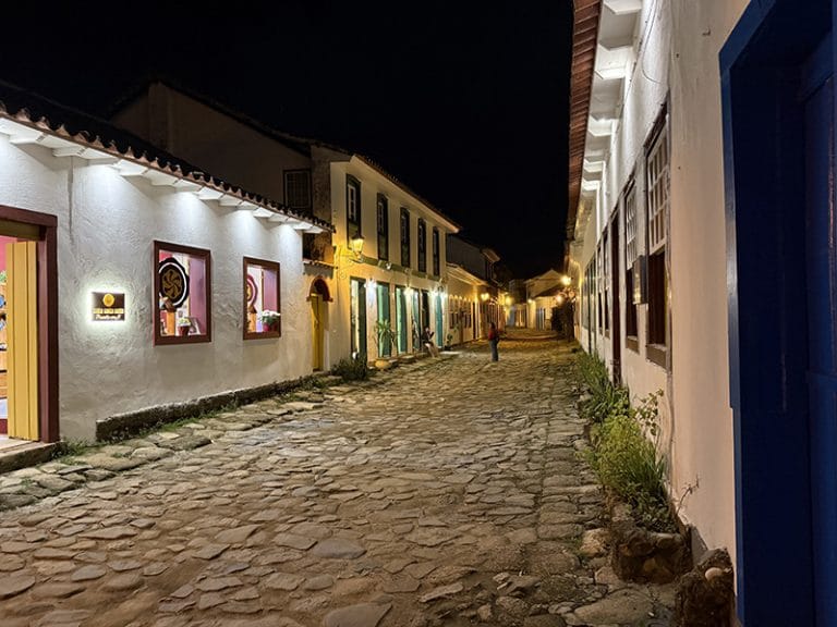 Após os dias de gravação e entrevistas, eu costumava levar o barco até defronte à cidade onde desembarcava para passear, comer em algum restaurante, e depois voltar para dormir. Não sei se por fazer sempre o mesmo trajeto, do cais para o restaurante, e de volta para o cais, não me perdia. E achava a cidade encantadora com seu lindo casario do século 18 pintado em cores vibrantes. Voltei à Paraty com 70 anos e sofrendo ‘disautonomia’.