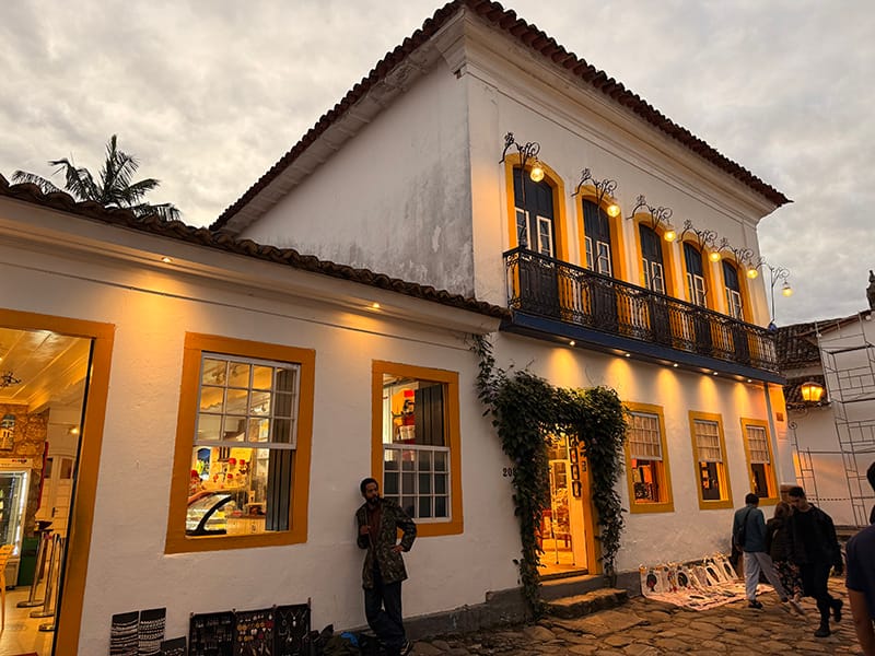 Ele vive dando festas em seu sobrado colonial. Mas nunca — nunca — ouvi uma crítica aos políticos da cidade, dos maus tratos, da falta de saneamento, etc. Jamais um comentário sobre o caos que só deprecia Paraty.