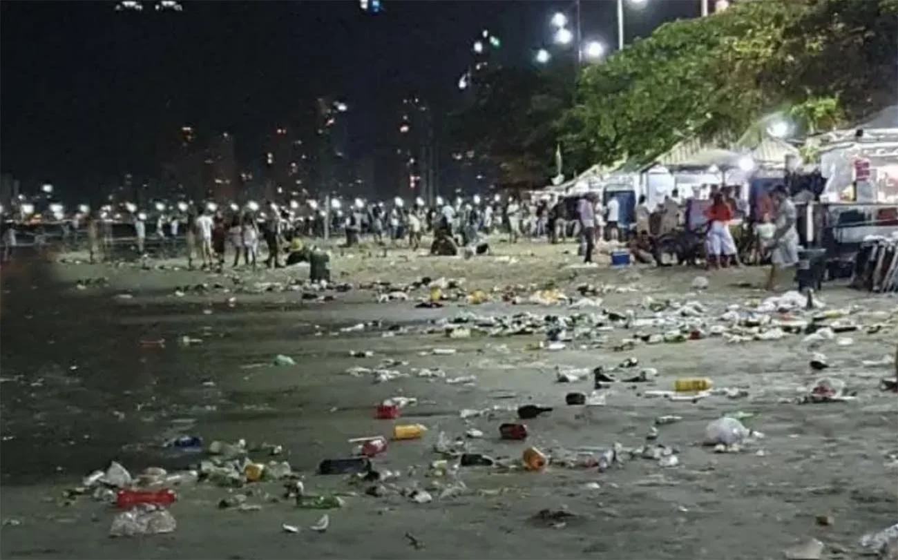 Mas apesar dos proprietários de apartamentos serem da classe mais alta, a sujeira provocada na virada eclipsou até a altura dos prédios. Réveillon deixou rastro de lixo na praia em Balneário Camboriú, foi a manchete do site www.nsctotal.com.br em matéria de Dagmara Spautz do primeiro dia do ano.